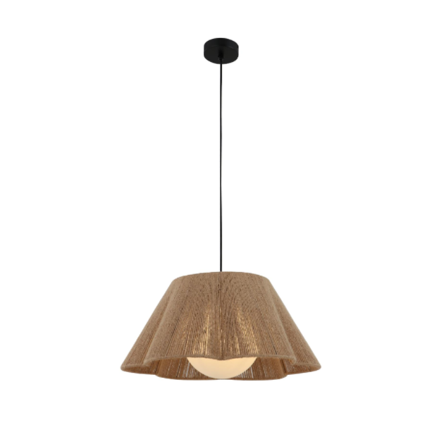 El equipo de diseñadores de Strong Lighting se inspira cada año en las últimas tendencias de la Feria de Iluminación de Milán y de la exposición Light + Building de Frankfurt, integrando los materiales naturales favorecidos por el estilo rústico de granja. La pantalla de cuerda de lino de 35 cm de diámetro está revestida con una pantalla interior de color blanco lechoso, creando un efecto de difusión de luz único. Se recomienda elegir una luz cálida de 3000K, especialmente adecuada para comedores, cafeterías y otros espacios de ocio.