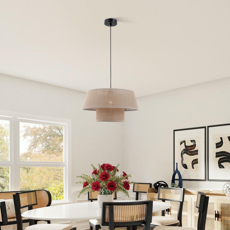 Presentada recientemente por el fabricante chino Strong Lighting, la lámpara colgante de cocina de cáñamo de dos niveles aporta un toque vintage y acogedor a la decoración de interiores. Un cable negro flexible de 1 m de longitud permite ajustar la altura de la lámpara libremente y utilizarla como lámpara colgante o Luminaria semi empotrada. Puedes colgarlo encima de una mesa de comedor, colocarlo en un rincón del salón o incluso colgarlo en el dormitorio. No es un producto funcional, sino parte de la decoración de su casa. La lámpara colgante de cocina de cáñamo de dos niveles tiene dos tamaños diferentes, otro más pequeño con un diámetro de 300 mm.